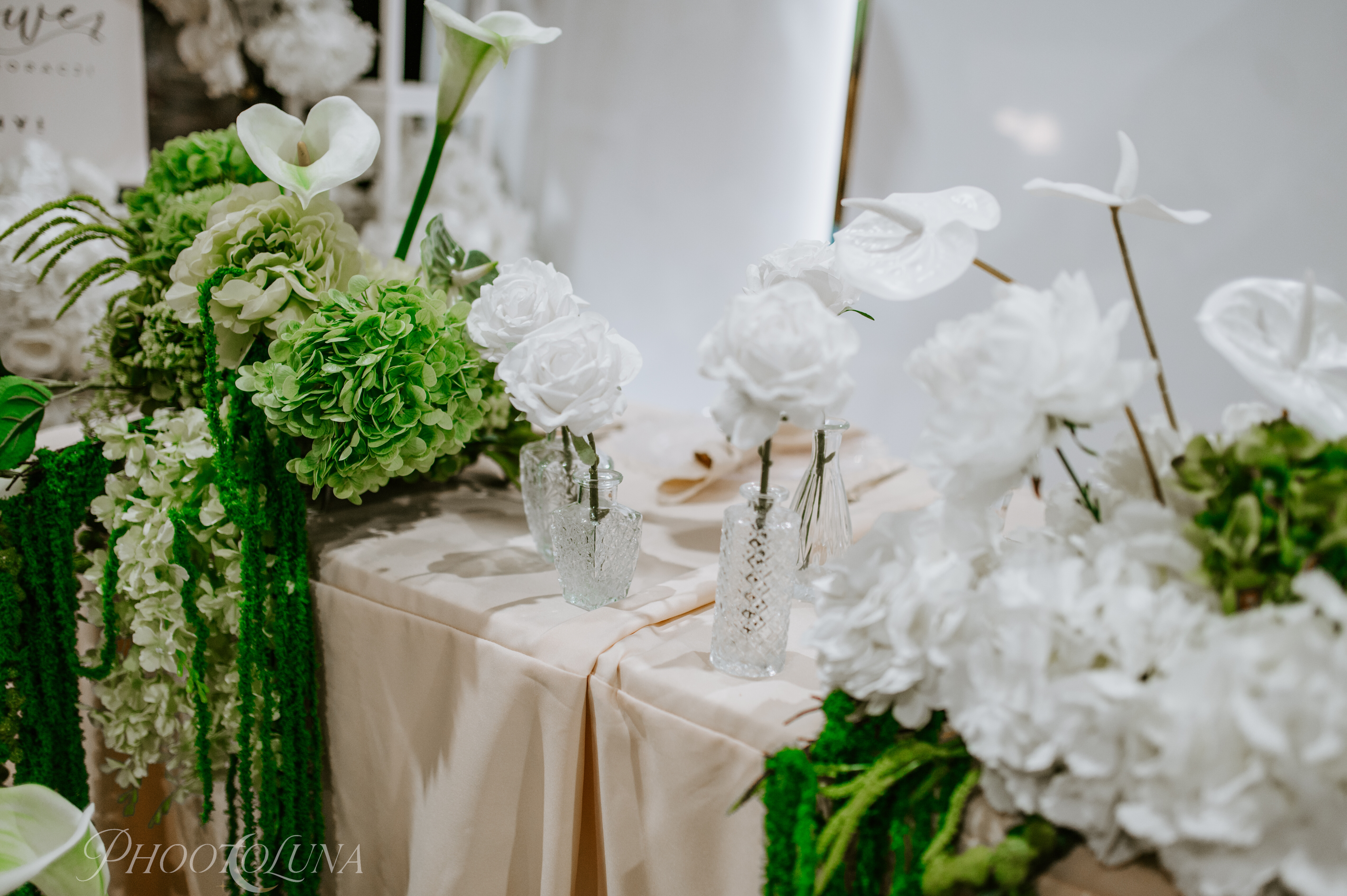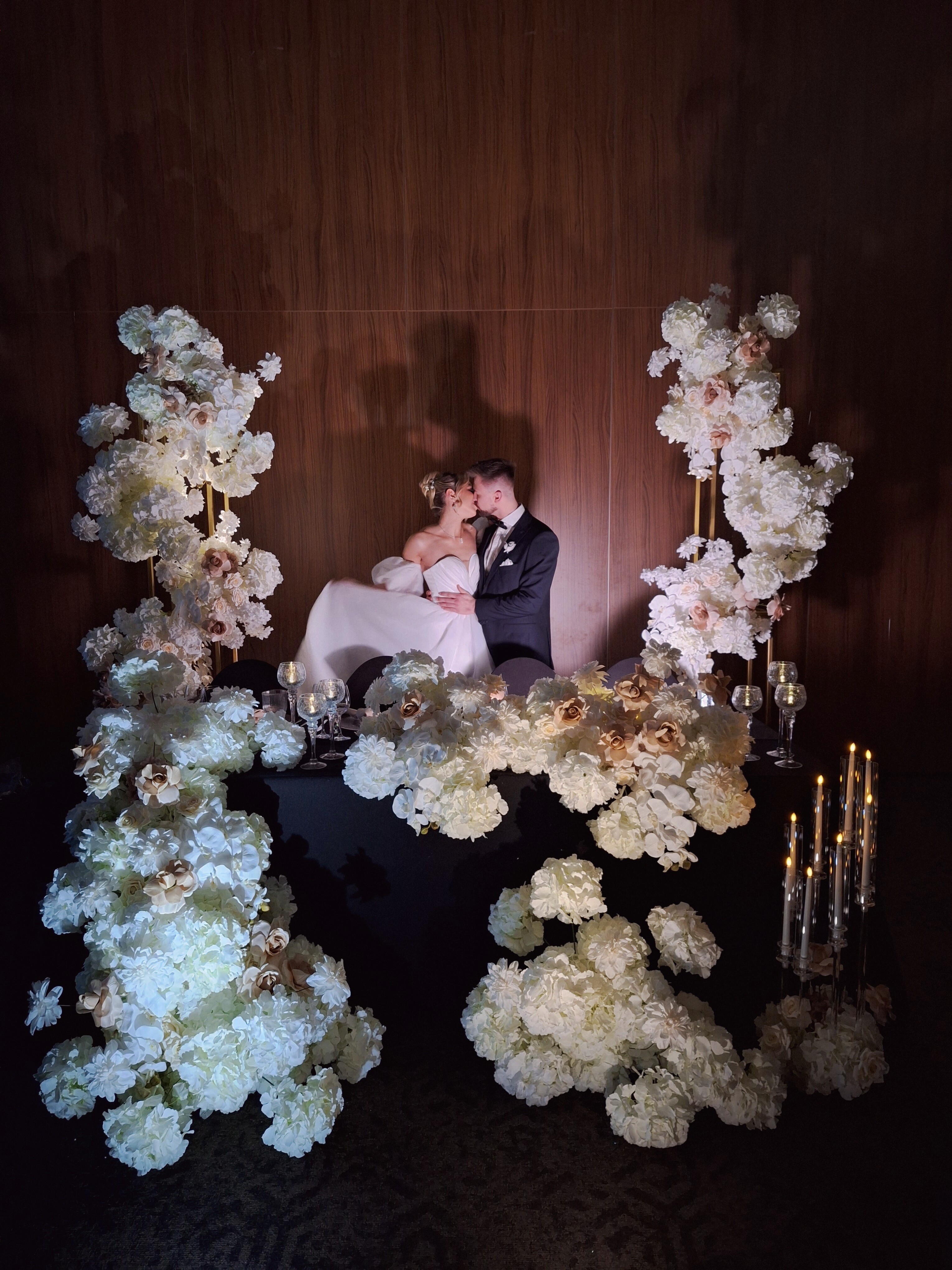 - Kwiatowa ścianka w kształcie koła (wys. 2,2m) na białym metalowym stelażu.