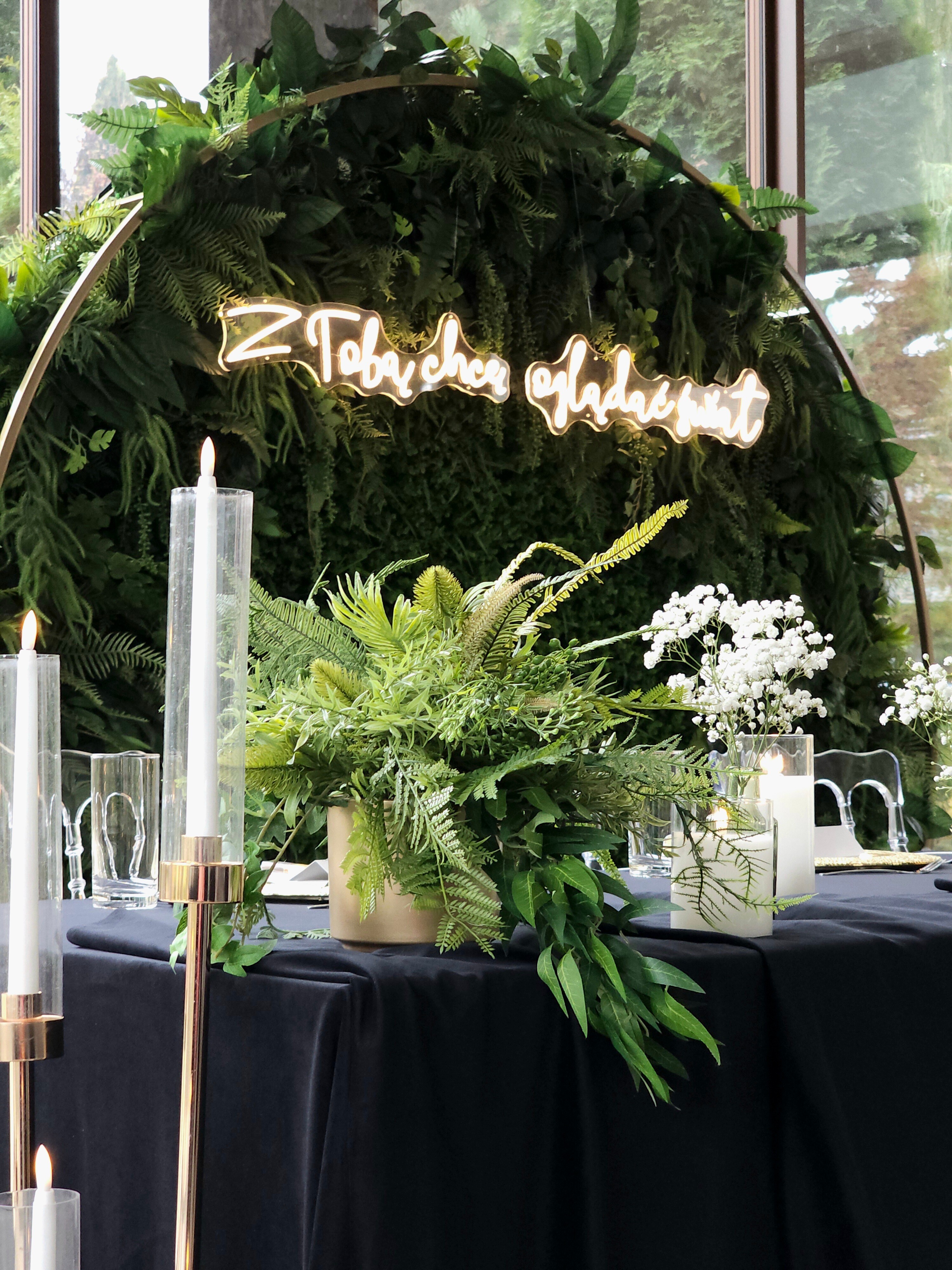 Dodatkowo oferujemy botaniczne dodatki w postaci napisów mąż&żona, razem lepiej, księga gości, słodki czy wiejski stół.